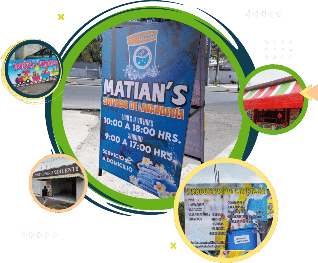 •Toldos •Banderas •Mamparas •Caballetes •Cortinas enrollables •Anuncios con estructuras •Estructuras para •señalización Publicidad